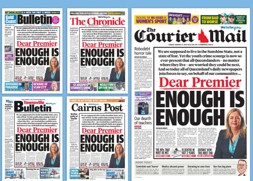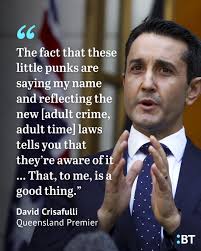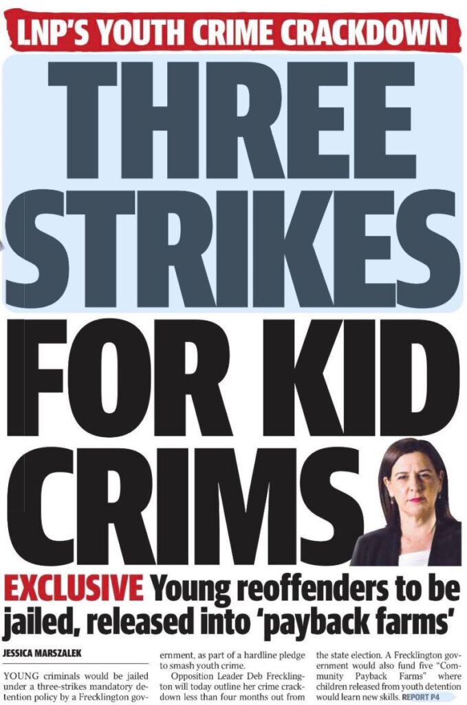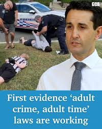 The ad nauseum technique can be seen not just in the generation of moral panic and amplification of extreme cases prior to an election, but in the public relations efforts post election. The adult crime adult time campaign and corresponding making Queensland safer laws that followed are still being marketed through reporting on their so called success. The falsely reported statistics initially are now being skewed even further to suggest that the laws, most only implemented 6 months ago, have had a positive impact on the safety of communities.