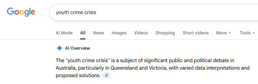 A search for ‘youth crime crisis’ in Google returns 93,700,000 results.
